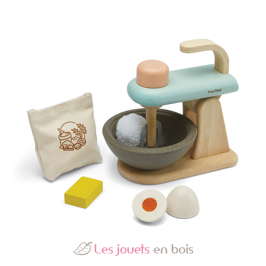Role play as a famous chef or homemaker while developing creative thinking and communication skills, fine motor skills and hand-eye coordination. The Stand Mixer Set has a spinning axis that rotates 360 degrees – resulting in realistic play. A mixing bowl made from PlanWood™, a pat of butter, flour bag with pretend flour and an egg that can be cracked like a real one make this playset the ultimate addition to imaginary kitchen play!
