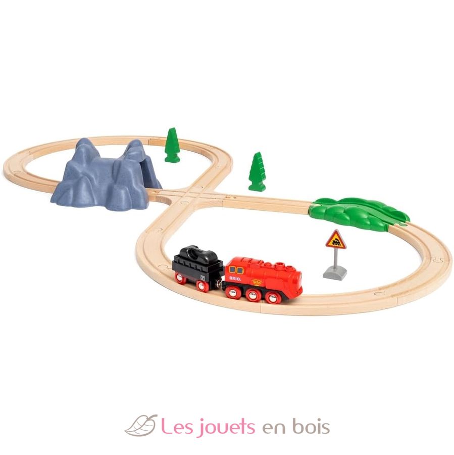 Figure 8 circuit with battery-powered steam locomotive from the Brio brand. Reference 36017.