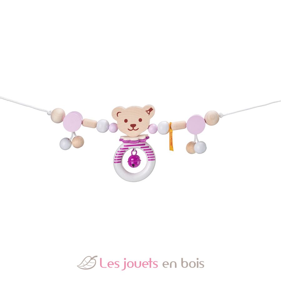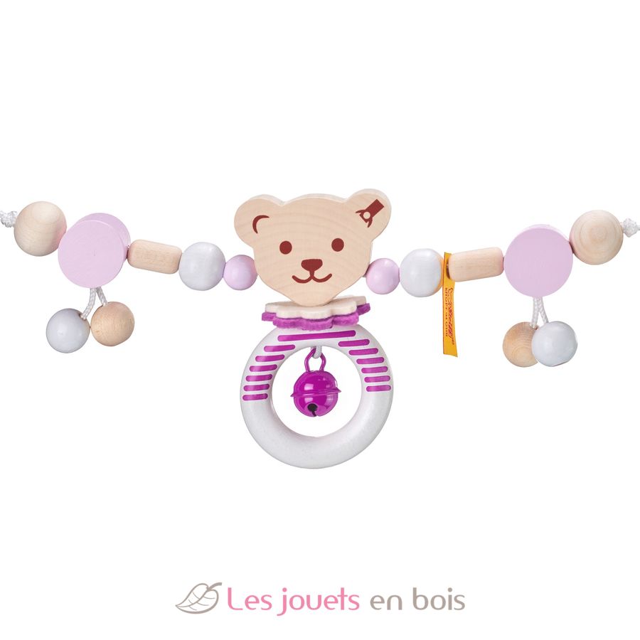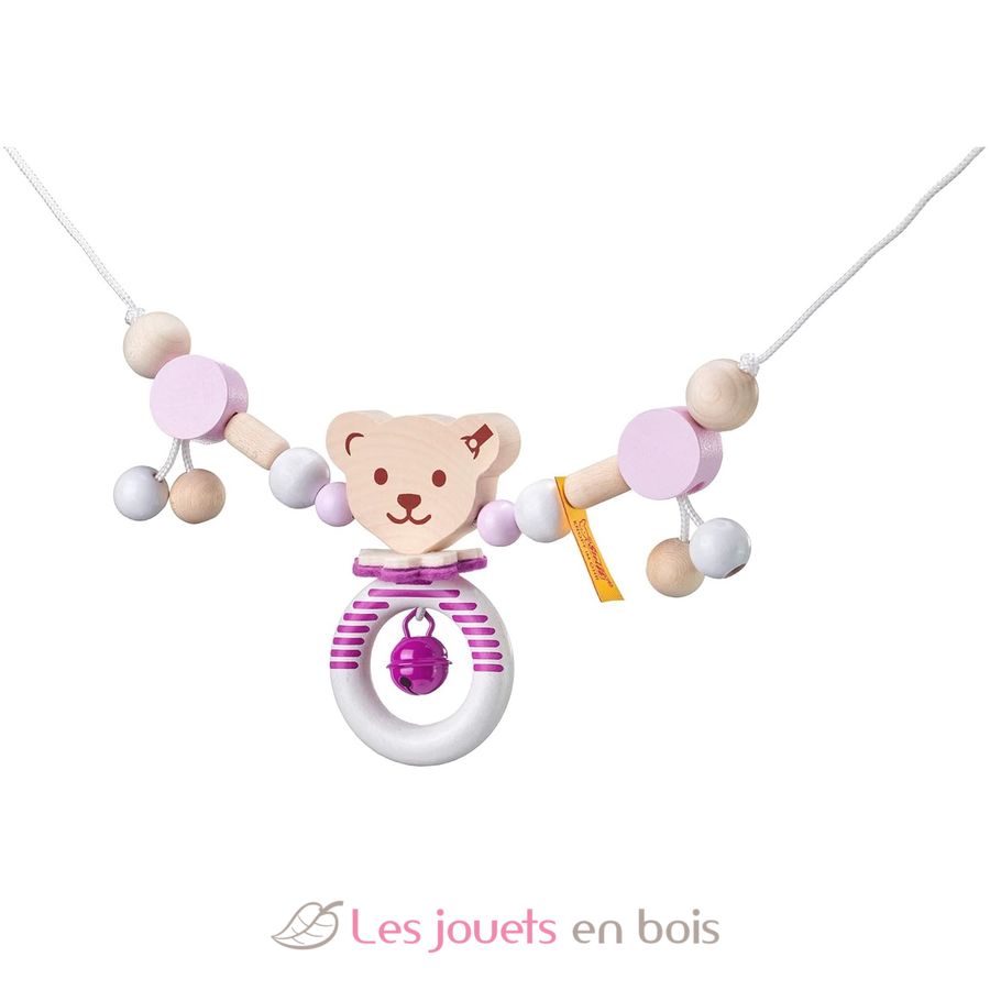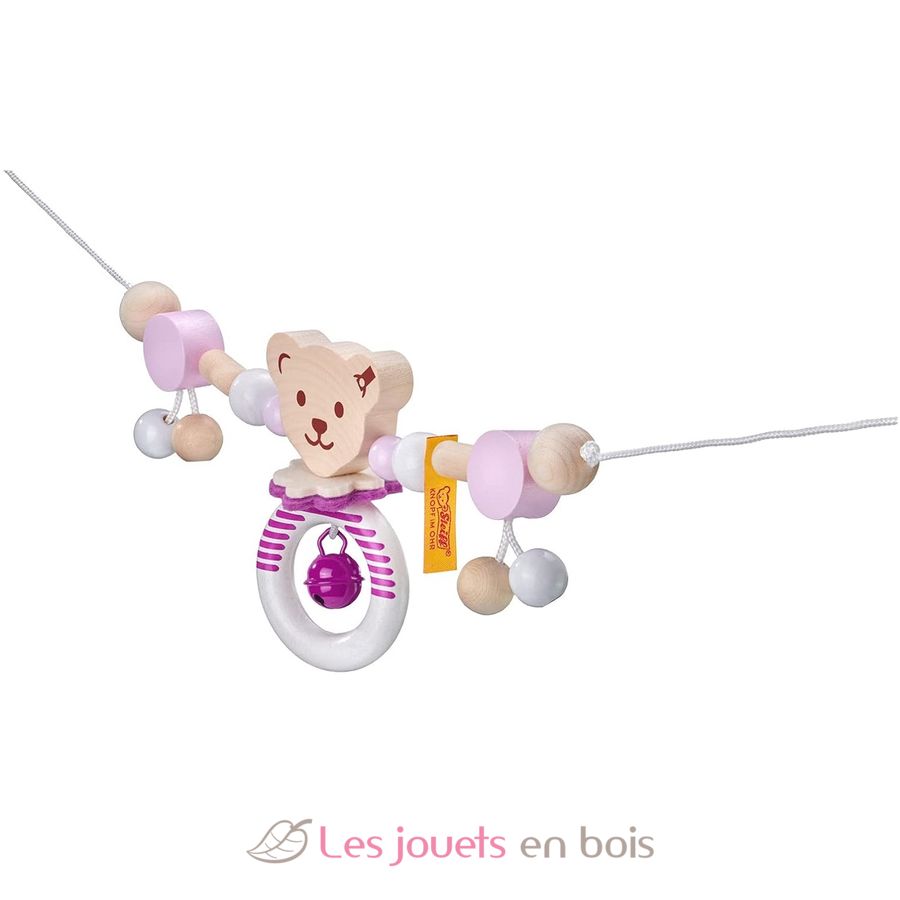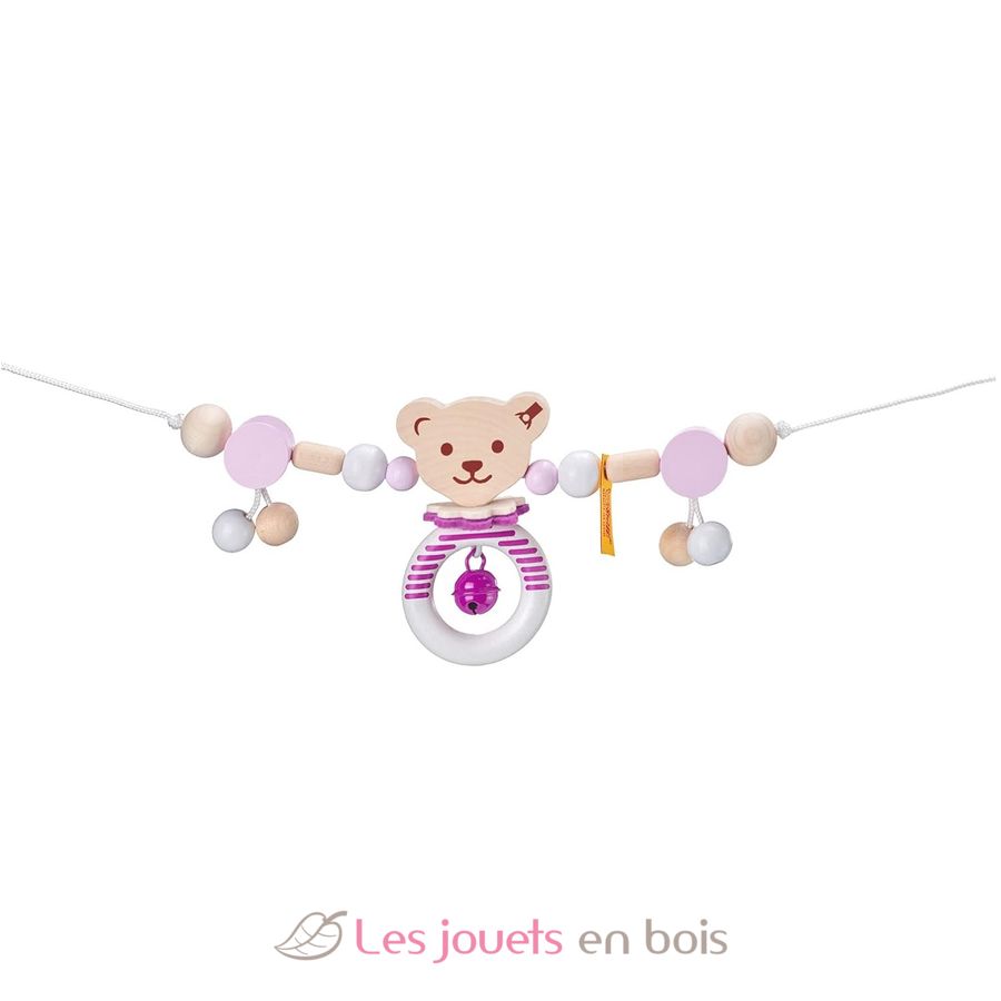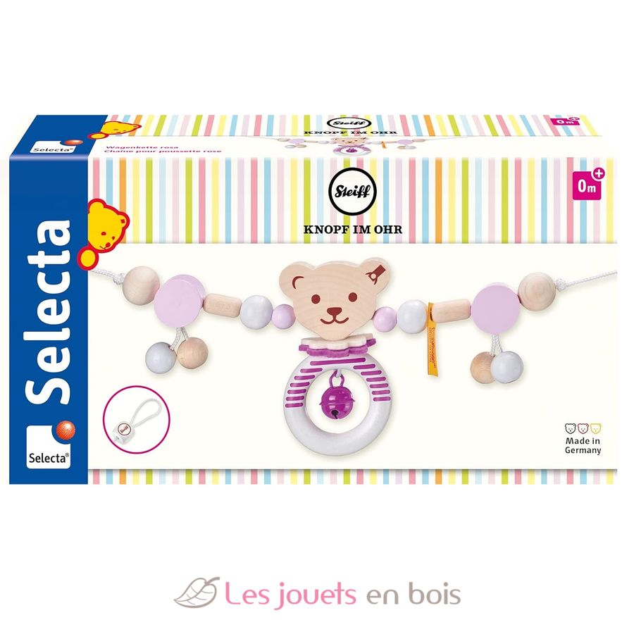 Steiff Bear stroller toy chain pink, a pram chain made in Germany by Selecta.