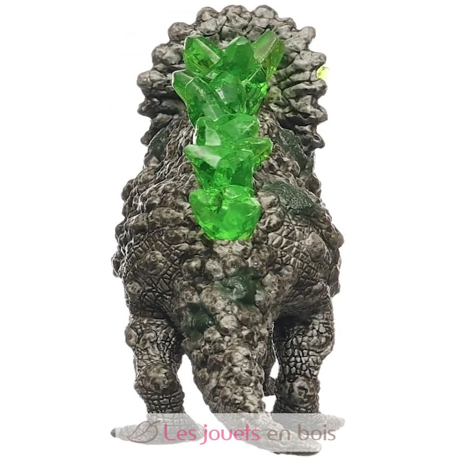 The Stone's Triceratops's green eyes sparkle menacingly in the darkness of the cave. This is a chilling predator! It lets out an angry growl. It's narrow in here, and his imposing skull makes it difficult for him to move easily. All he can do is run straight ahead! He lowers his large head to attack and takes a run. You have to get out of here quickly before he strikes with the three sharp crystal horns on his head. Run for your life!