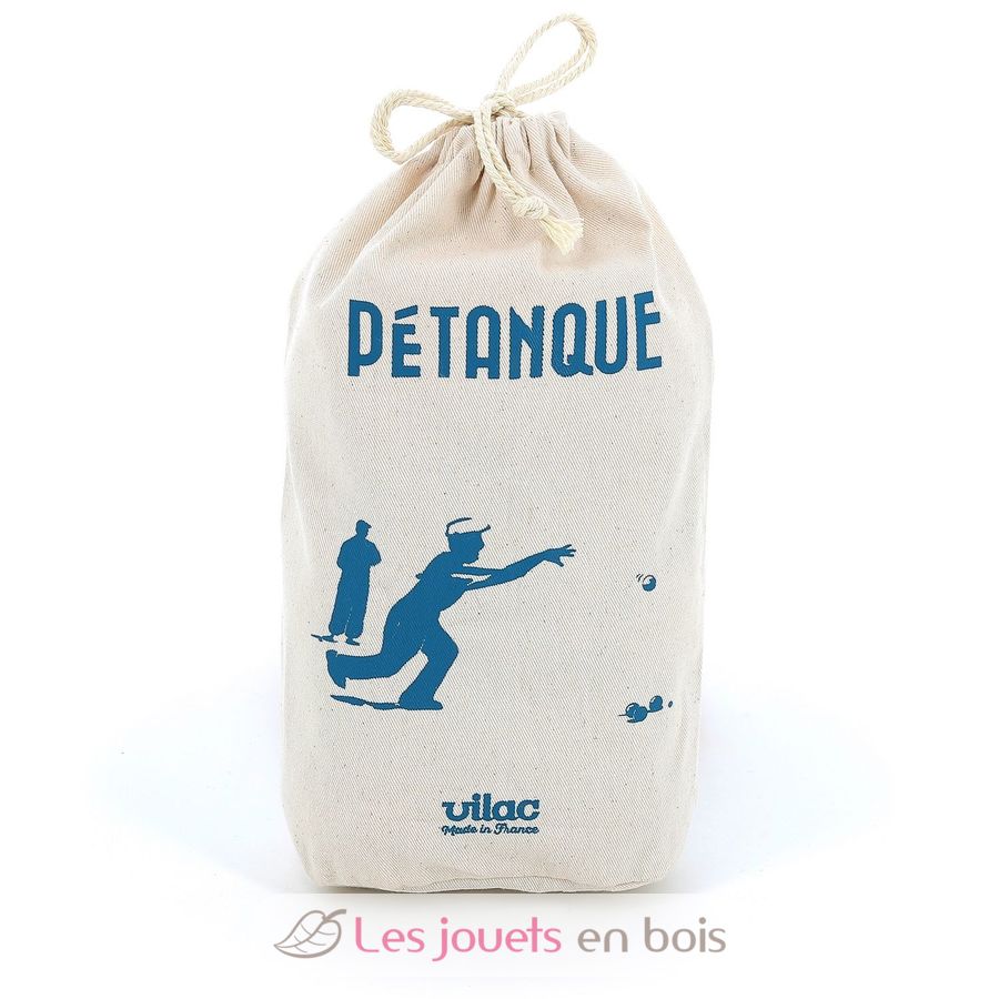 This wooden petanque game is composed of 3 pairs of wooden balls and 1 piglet. Comes with a storage bag.