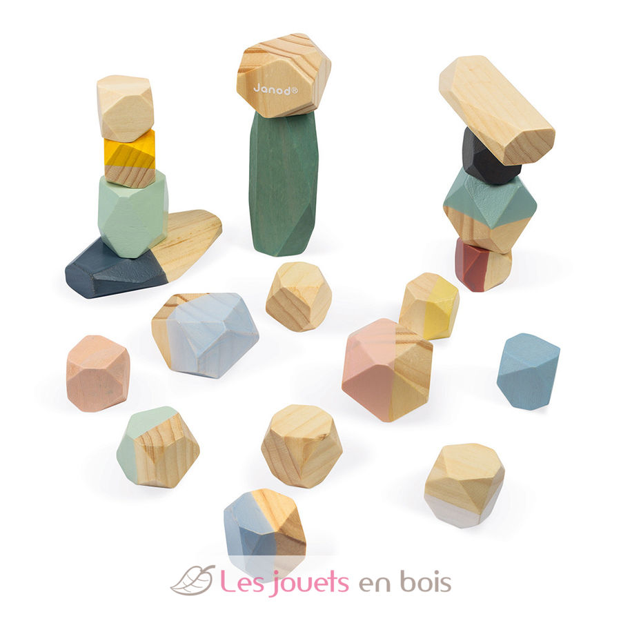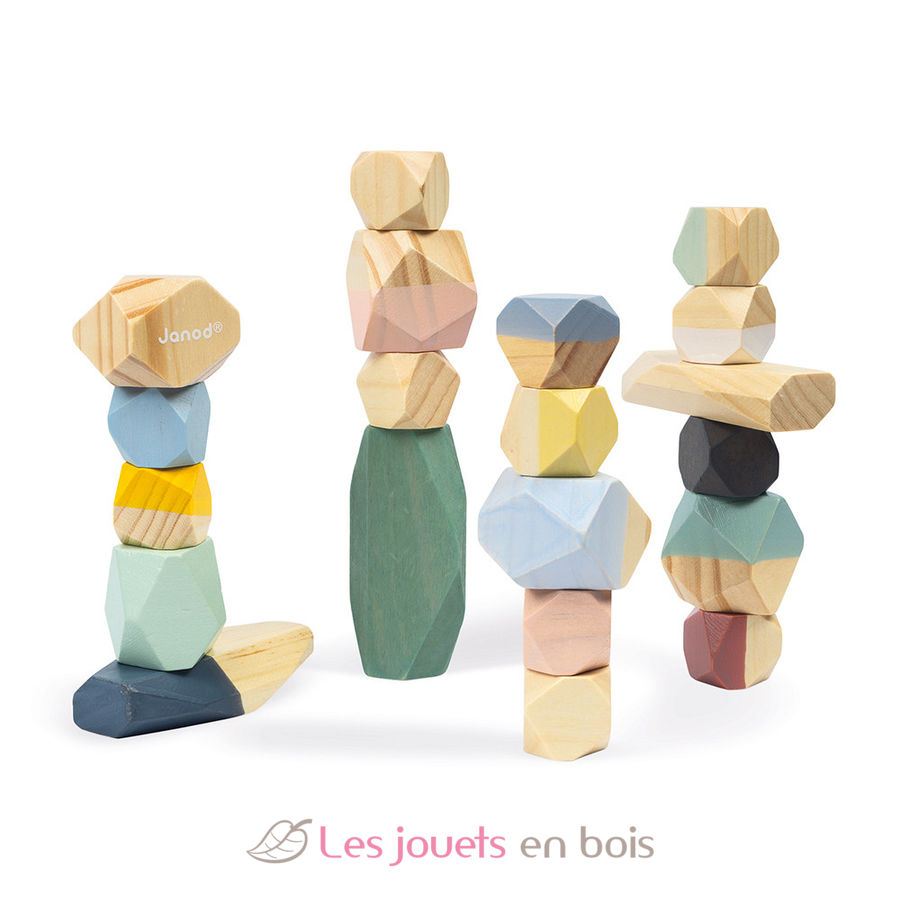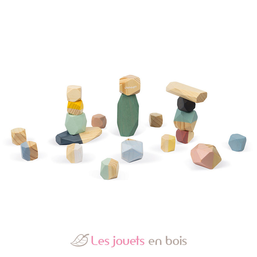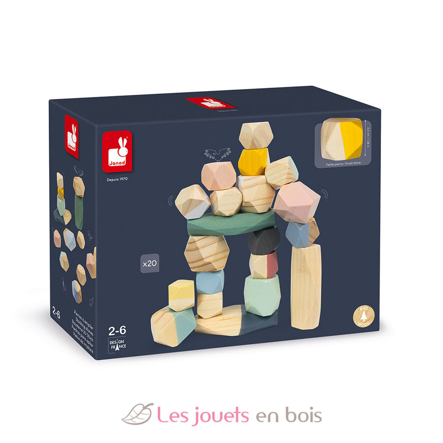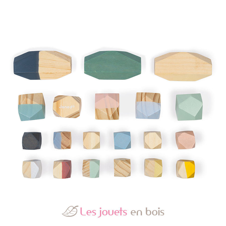 By using these 20 light wooden stones, your child will discover construction and balance. This wooden toy is part of the Sweet Cocoon collection, a delicate colors range, inspired by current trends to gently accompany your child's first learnings!.