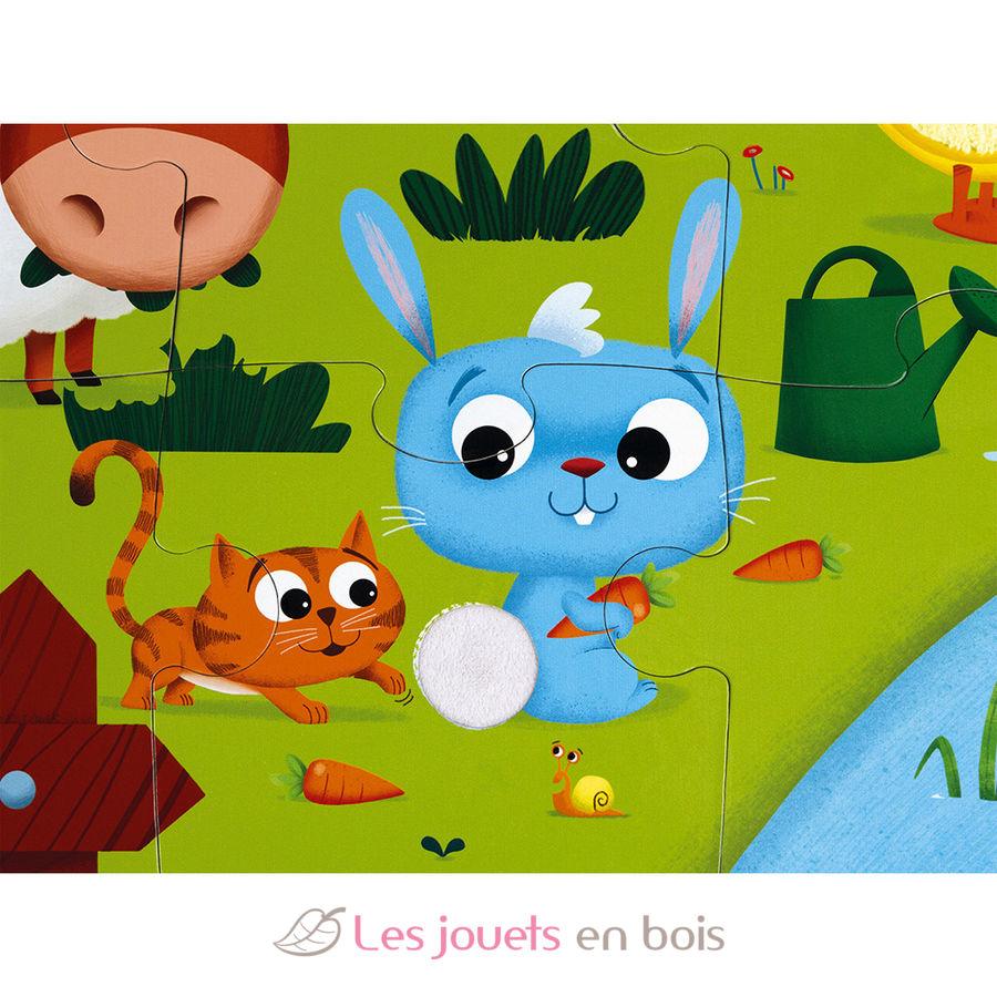 Tactile puzzle Farm Animals made by Janod. Item number J02772.