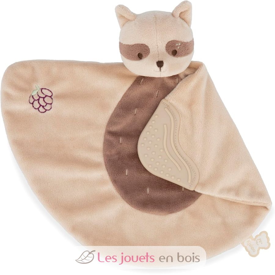 This raccoon comforter is the perfect companion for baby's teething! A useful and original baby gift, this teething toy has one end adorned with grooves and small bumps that gently massage baby's sore gums. Soothing, this soft silicone part can be put in the mouth endlessly!