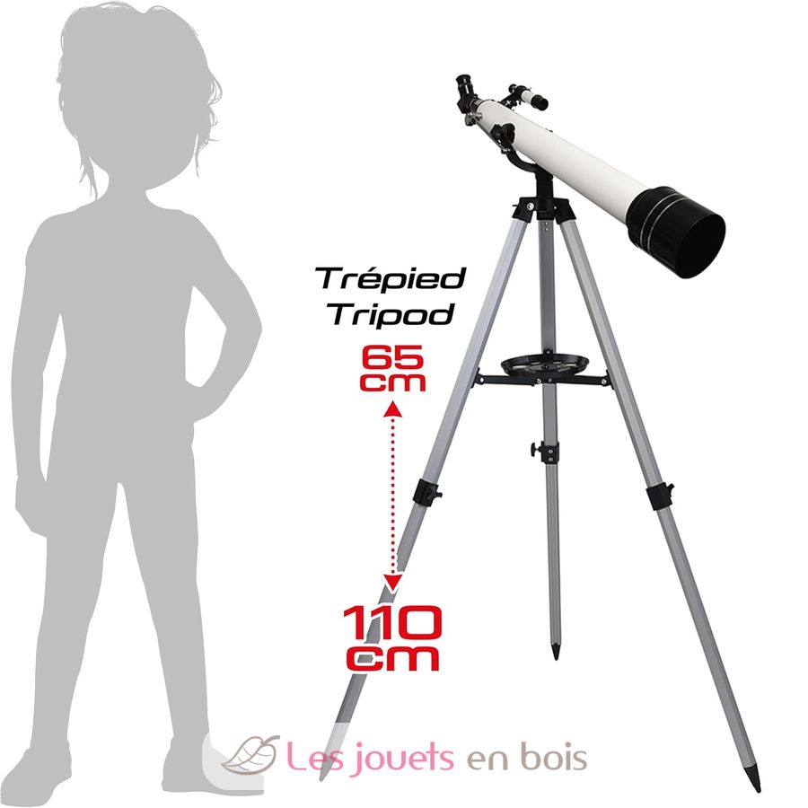 All-metal tube. 60 mm diameter aperture and 700 mm focal length. 3 interchangeable eyepieces supplied: 20 mm, 6 mm and 10 mm Kellner.Aluminium tripod with two positions: 65 cm and 110 cm.