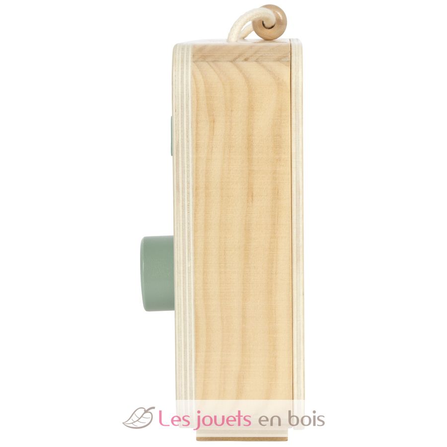 A practical handle makes the music box mobile and perfect for taking it with you wherever you go. The imprinted clock with adjustable hands also encourages children to play their first role-playing games in the theme of time.