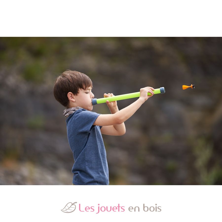 Load the blowgun with ’ammunition’, take a deep breath and blow, sending the dart through the air!