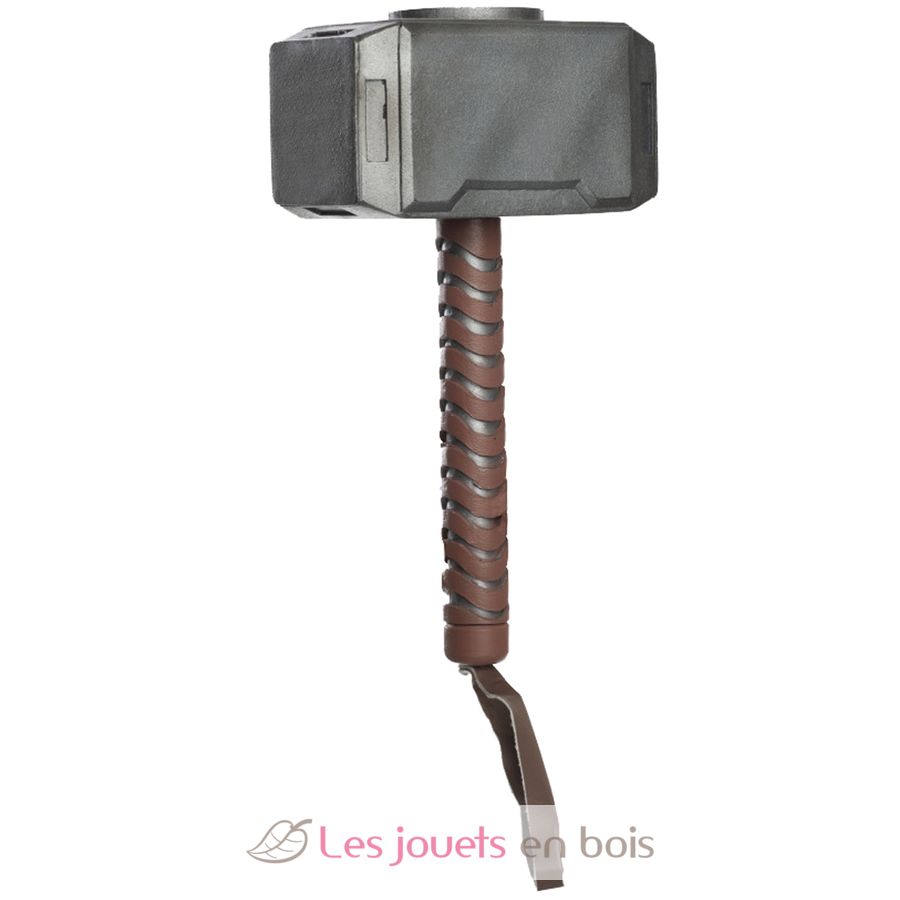 This children's hammer is made of gray and brown plastic. It measures 30 cm and has a fabric handle for easier gripping. It's the perfect accessory to complete a Thor costume (costume not included).