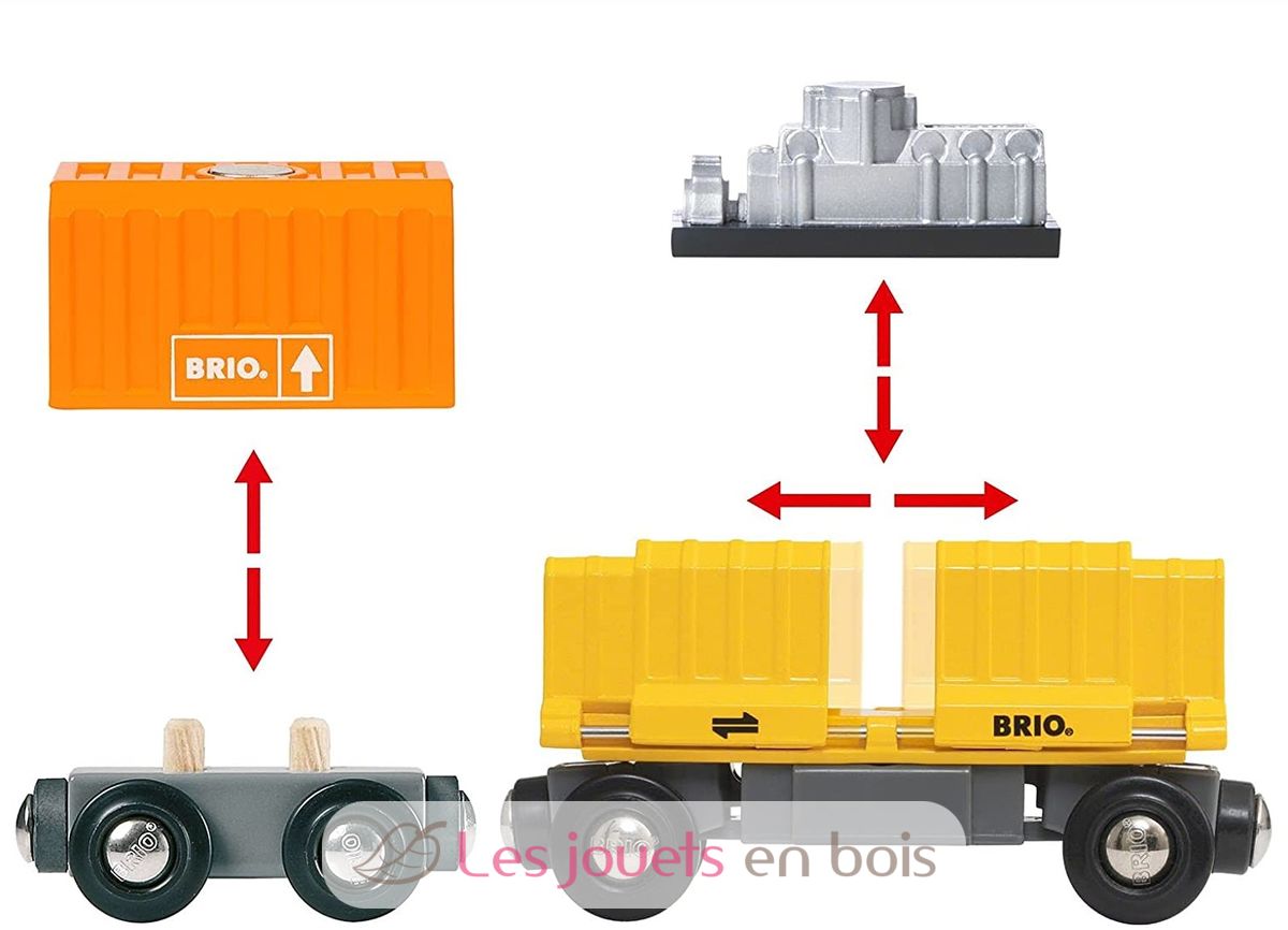 Part of BRIO World: Featuring iconic BRIO magnetic connections and pins, this cargo train and its load are ready to connect to other BRIO World railway vehicles, wagons and cranes.
