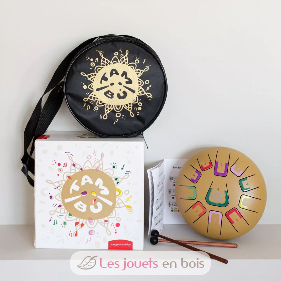 The Tambú comes with color-coded and numbered music, making it very easy for beginners to play. Thanks to its color and number coding, the Tambú tongue drum allows you to create magical melodies without any prior musical knowledge. This simplicity allows children and adults to enjoy music from the very beginning.