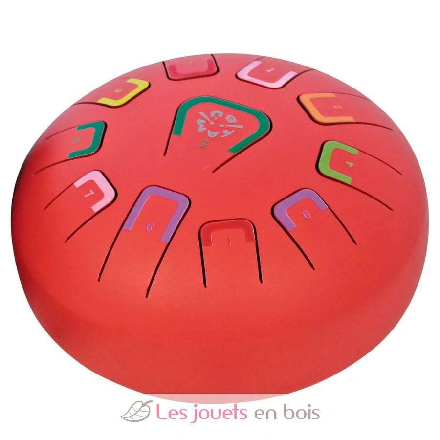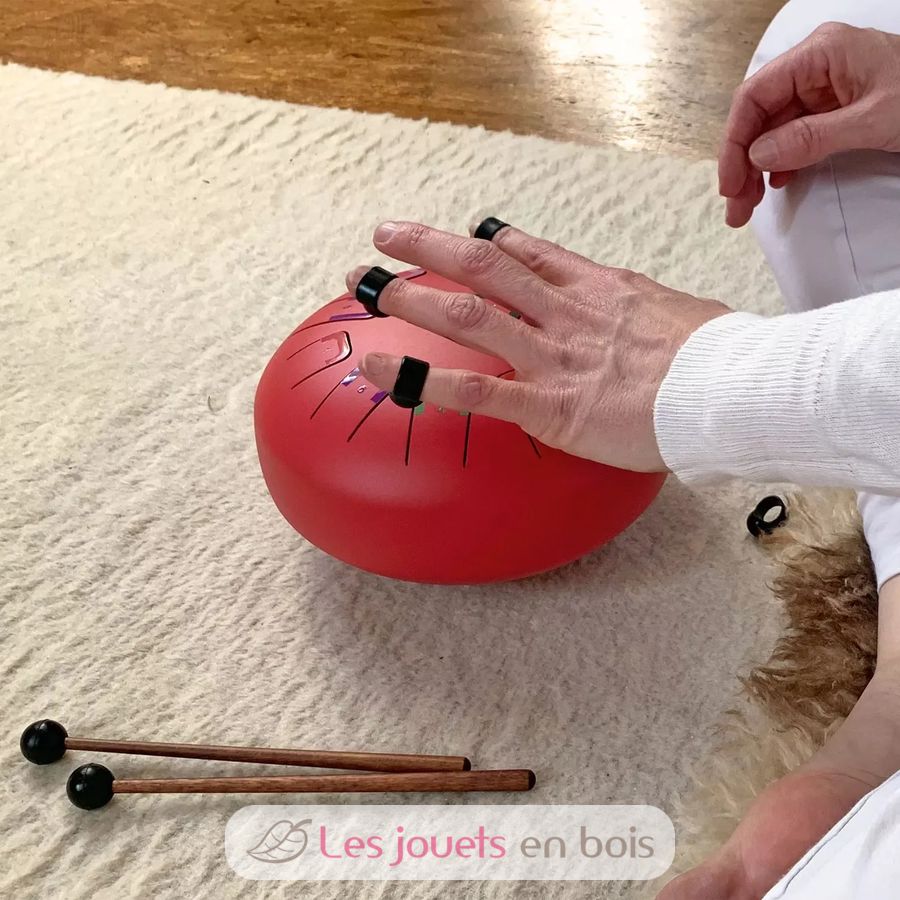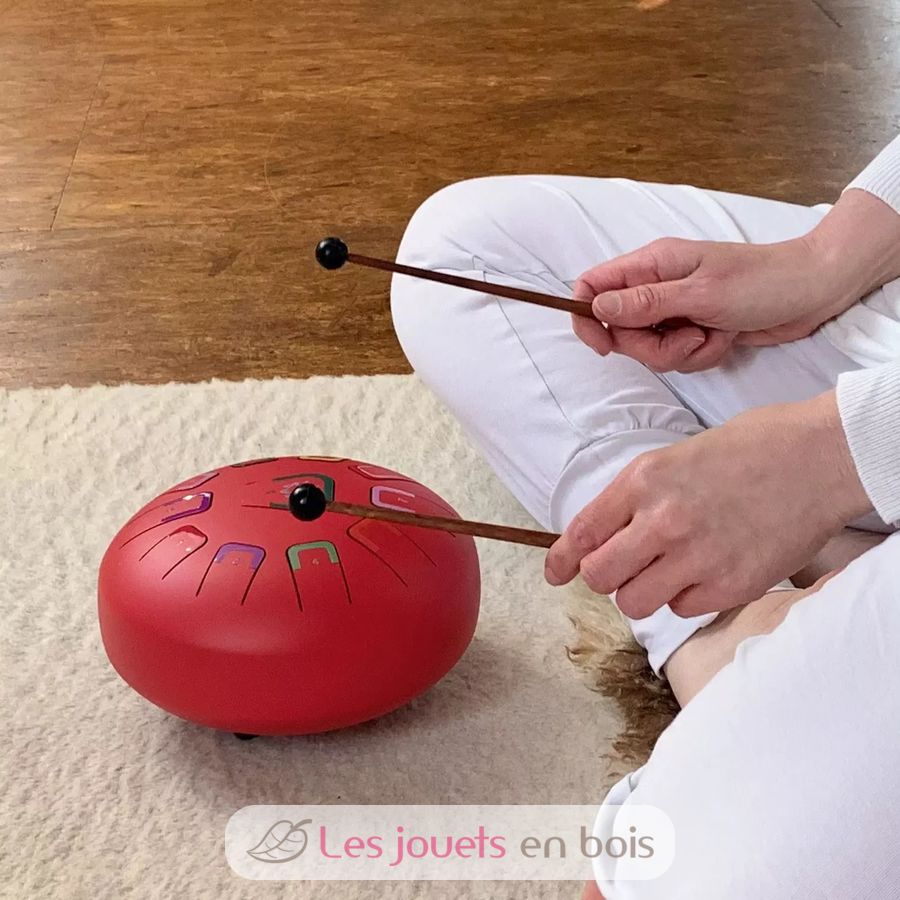 This drum has 11 notes, differentiated by numbers and colors, that emit relaxing harmonic sounds. It can be played in different ways, each producing a different sound intensity: with sticks, with fingerpicks, or hands.