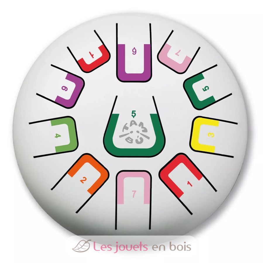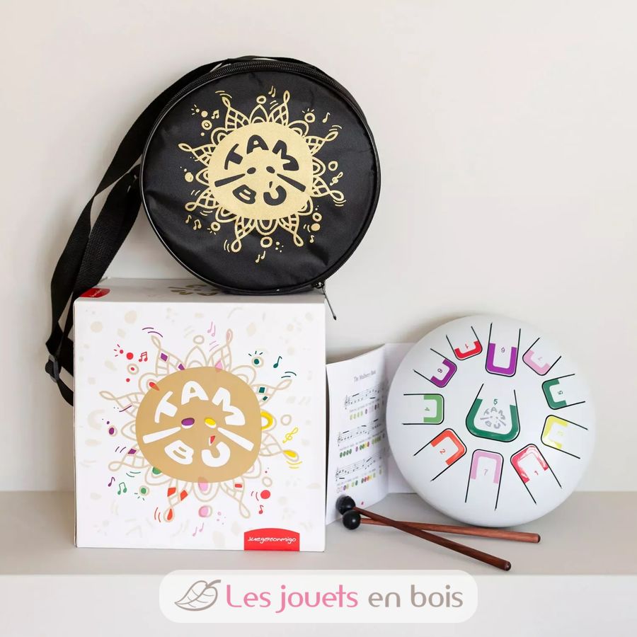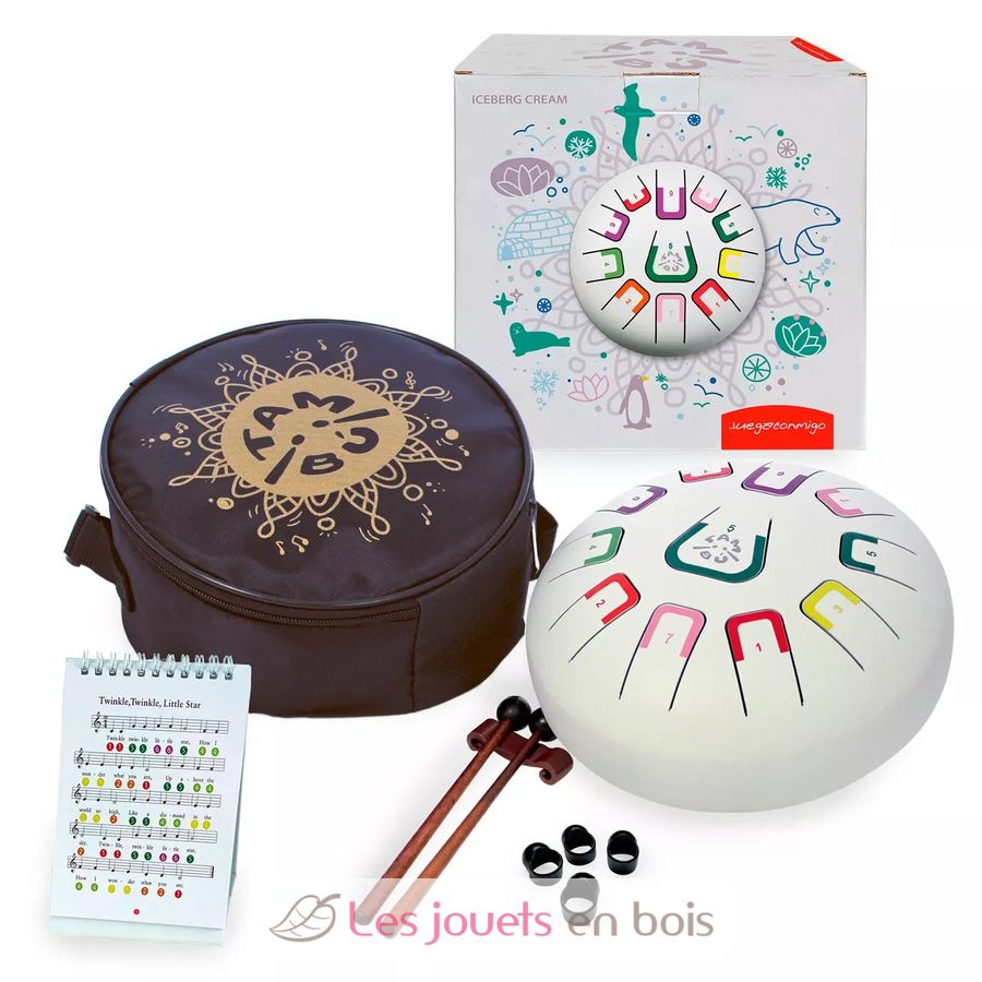 The Tambú comes with color-coded and numbered music, making it very easy for beginners to play. Thanks to its color and number coding, the Tambú tongue drum allows you to create magical melodies without any prior musical knowledge. This simplicity allows children and adults to enjoy music from the very beginning.