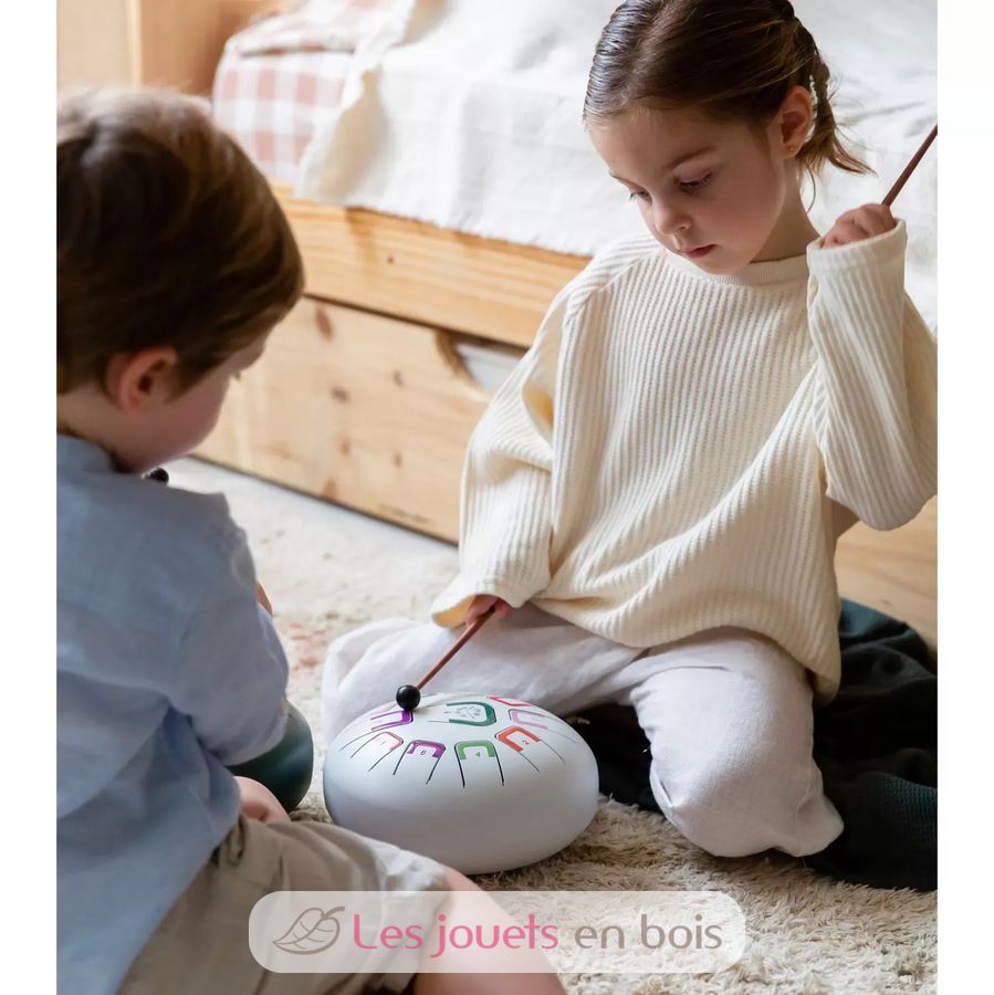 This drum has 11 notes, differentiated by numbers and colors, that emit relaxing harmonic sounds. It can be played in different ways, each producing a different sound intensity: with sticks, with fingerpicks, or hands.