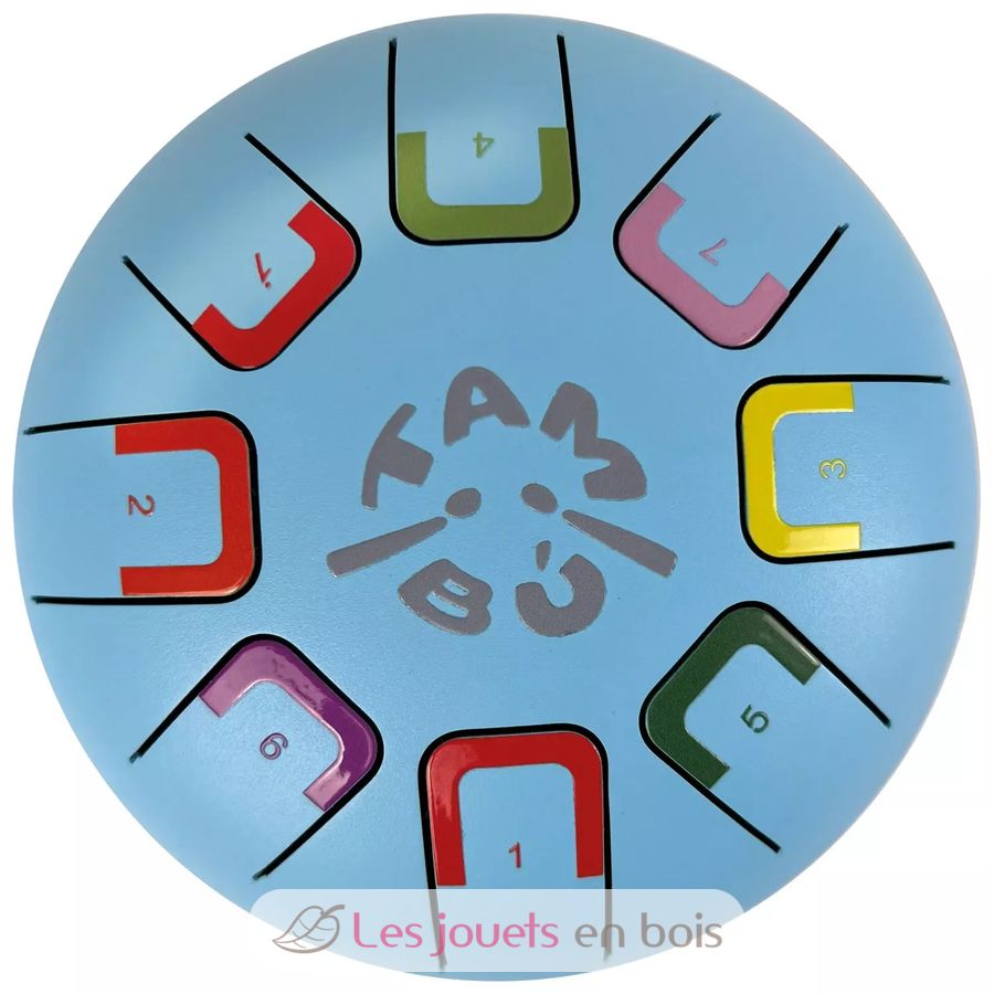 Tongue Drum, Baby Tambú, 8 Notes, blue (Sky Kite). Diameter 15 cm.