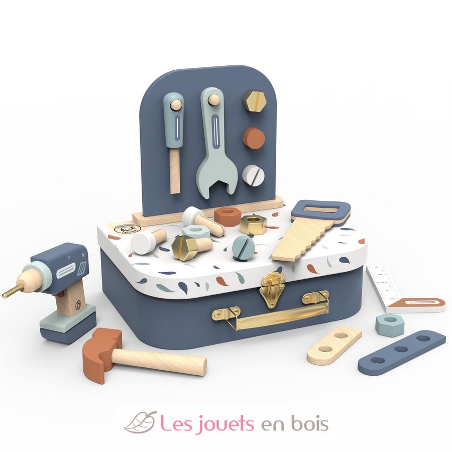 Get ready to build, fix, and imagine with the tool suitcase, a toy set designed for young builders 36 months and up. Packed with 1 hanging board and 19 wooden accessories, this engaging set lets children explore the world of tools and construction through open-ended, imaginative play.