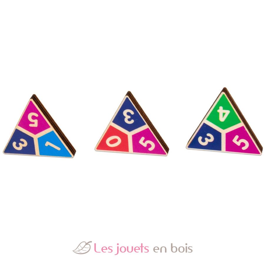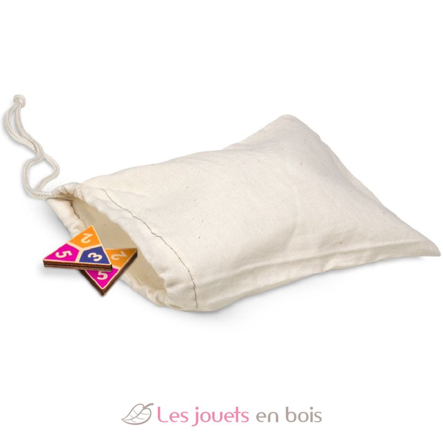 Made of wood, this travel-sized triangular domino game, delivered in its metal box, is ideal for family fun.