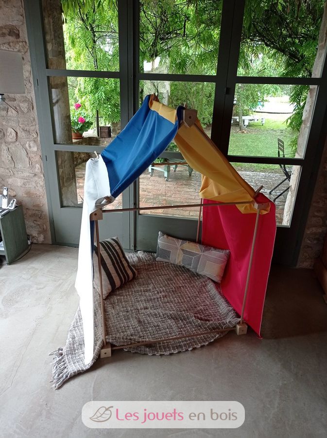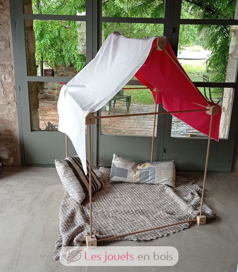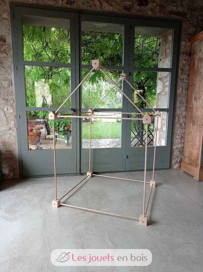 Unlike the majority of Trigonos construction which include tailor-sized pieces of fabric to combine with the wooden pieces, the Big Start does not include them because it proposes using sheets, sarongs, scarves, etc. that you may have at home to decorate whatever structures you can imagine.
