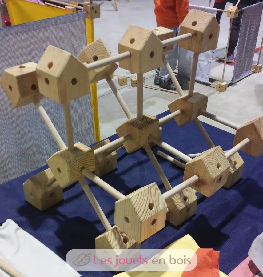 Trigonos Start includes 42 pieces : 6 blocks, 6 pentagons, 28 sticks in two lengths. Comes in a wooden box.