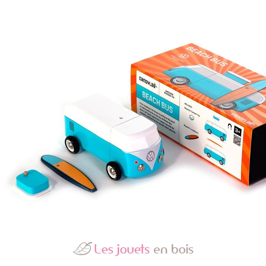 You will love this Beach Bus with VW officially licensed . This iconic van Volkswagen Type 2 comes with a magnetic camper top and surf board.