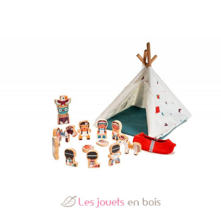 Experience real Indian stories with these beautifully illustrated Indian people made of wooden blocks and a wigwam made of fabric. Imitation play stimulates the imagination and creativity.