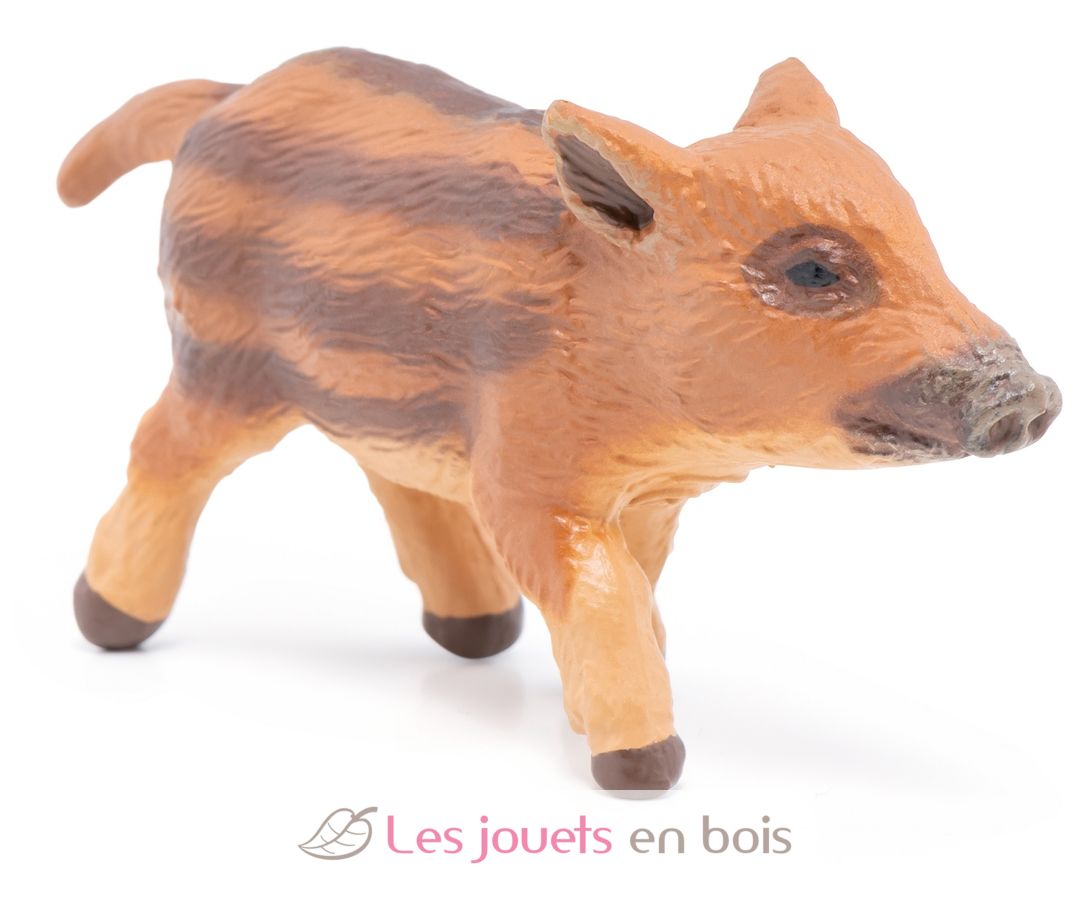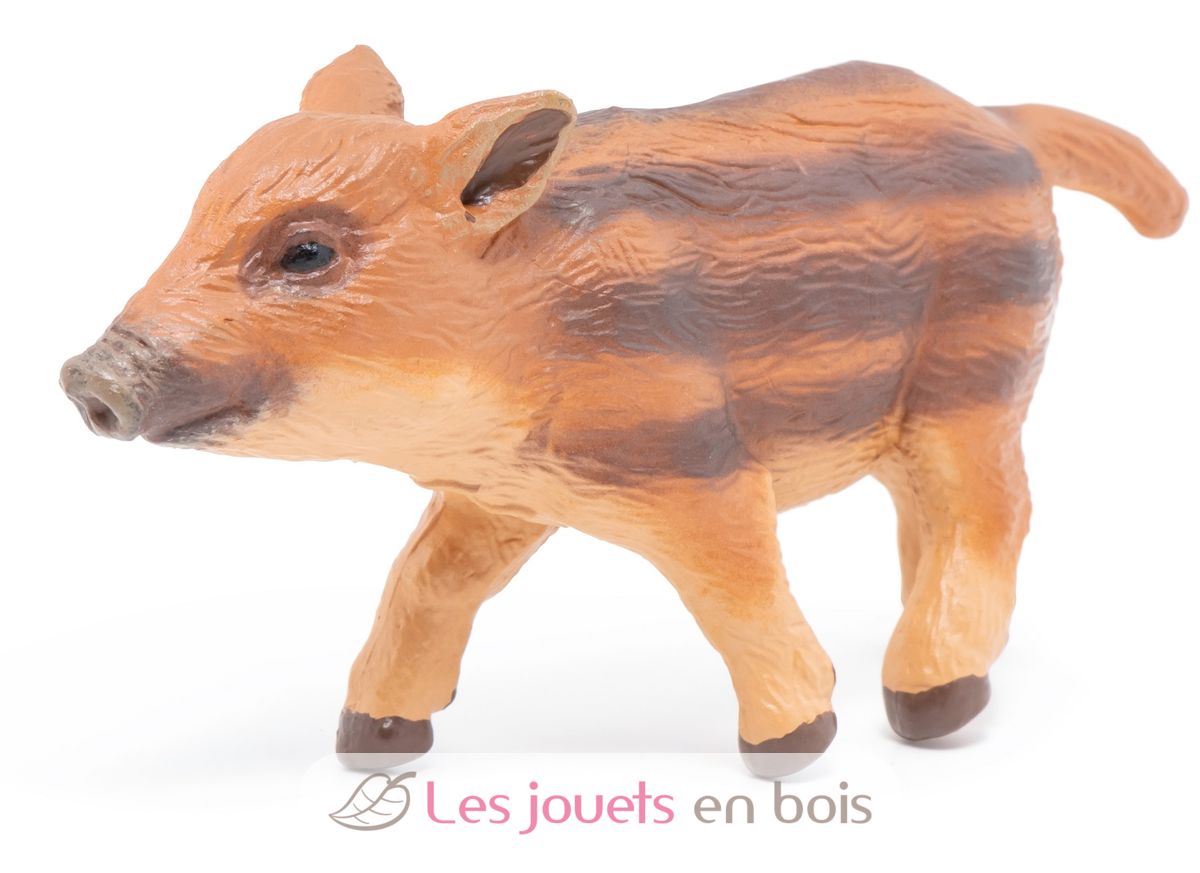 The Papo wild boar is the youngest of the sow and the wild boar. Unlike adults, it has a coat with dark stripes, preceding the red beast stage around 6 months when it becomes more independent. He is born perfectly alert, with his eyes open and happy to be able to follow his mother in her travels from the end of their first week.