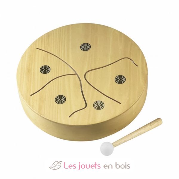 This wooden drum produces a rich, resonant sound that stimulates children's creativity and imagination.