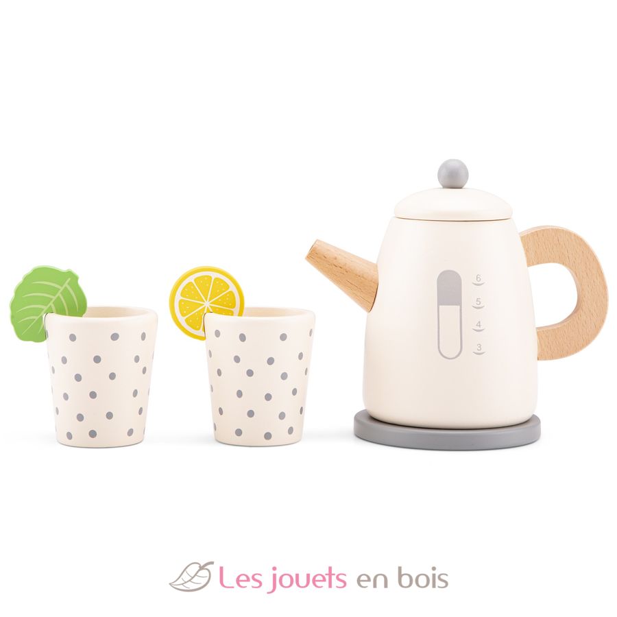 Get ready to host a delightful tea party with this wooden kettle by New Classic Toys.