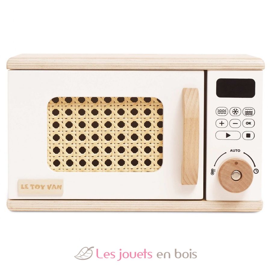 Wooden microwave made by Le Toy Van. Item number TV3002.