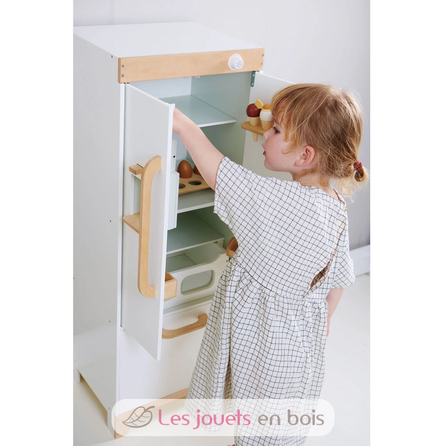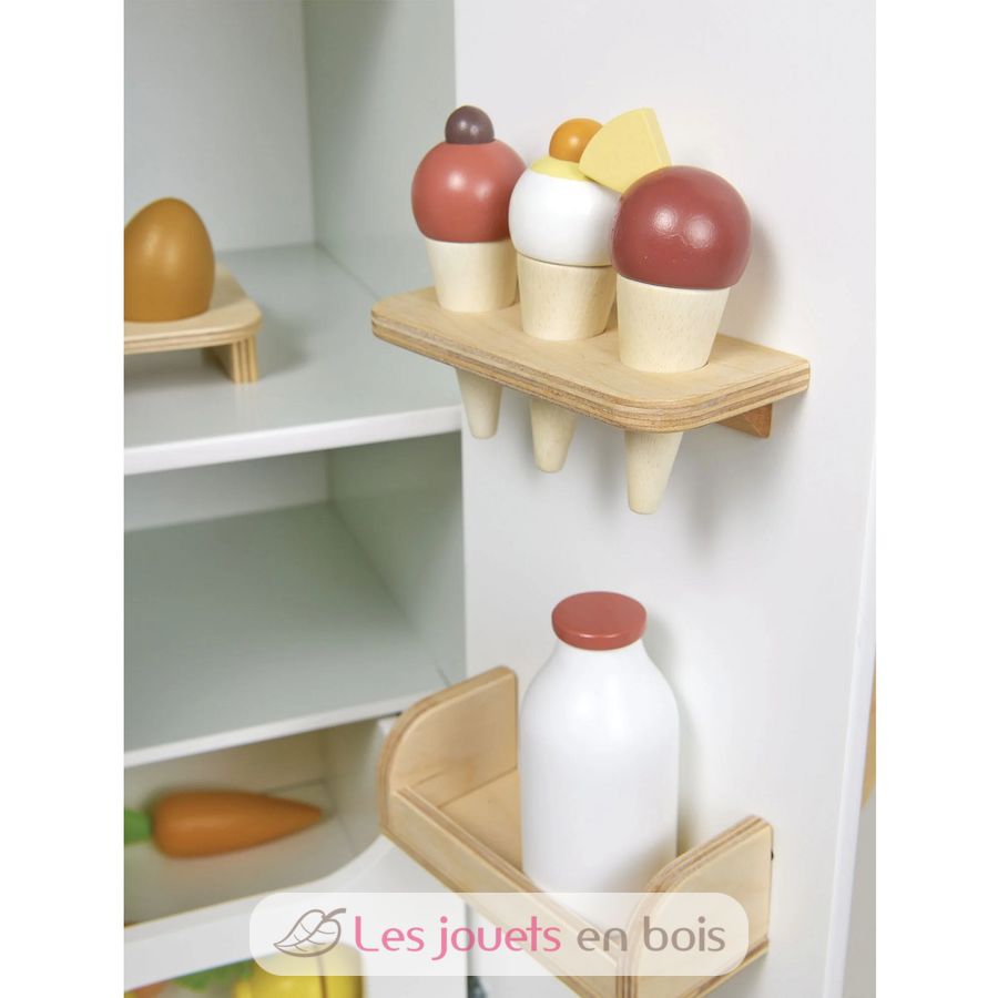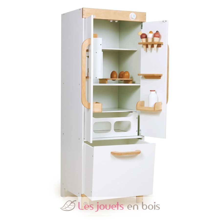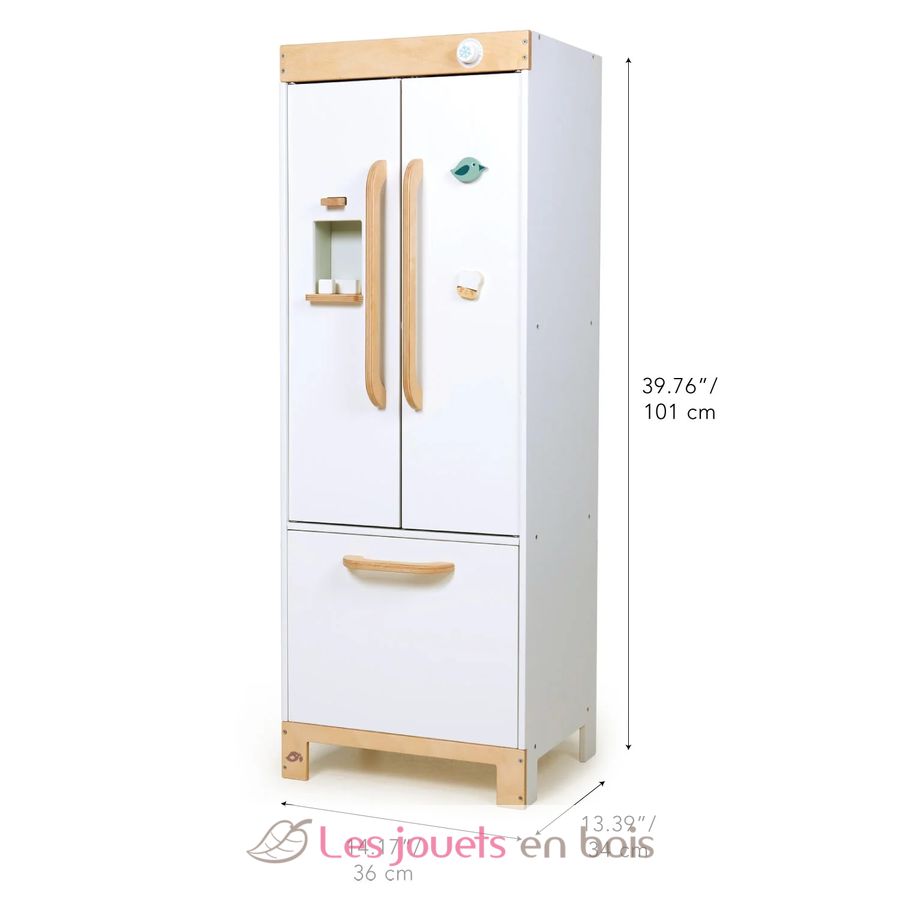 Need somewhere to chill your ice-creams? This stand-alone white fridge-freezer has a real wow factor with a unique functioning ice cube dispenser which drops ice cubes with the press of a button. Complete with 3 ice-cream cornets, 3 brown eggs on an egg stand, a bottle of milk, and two magnets (Cup not included).