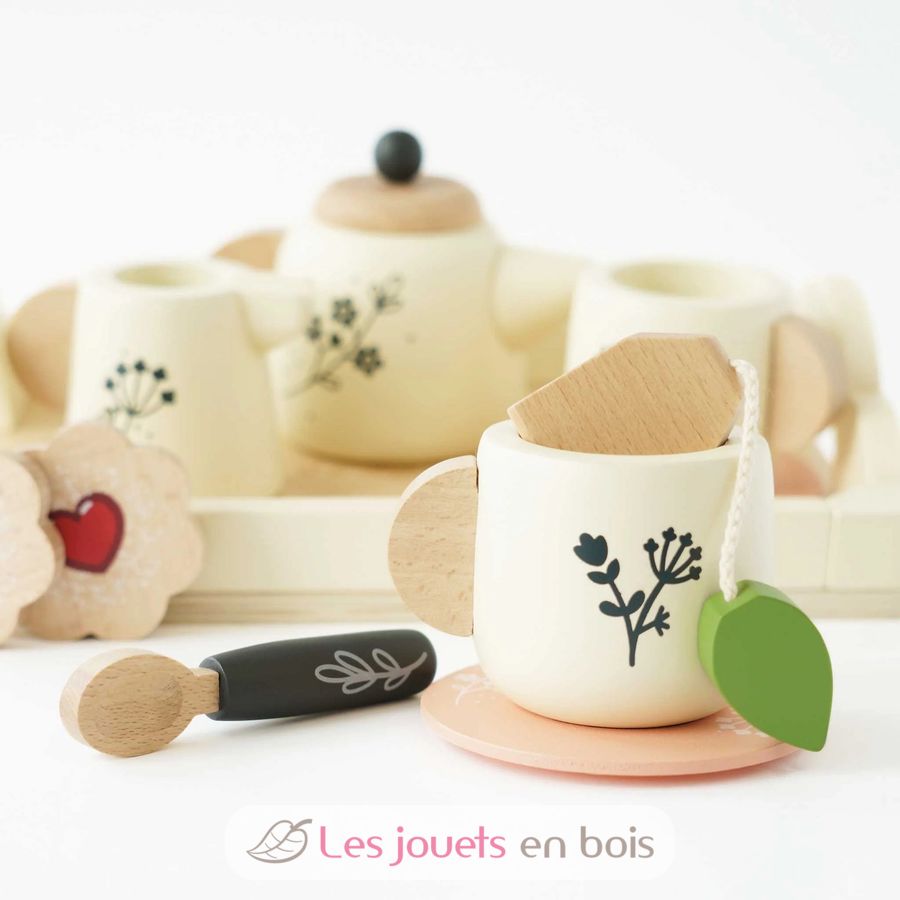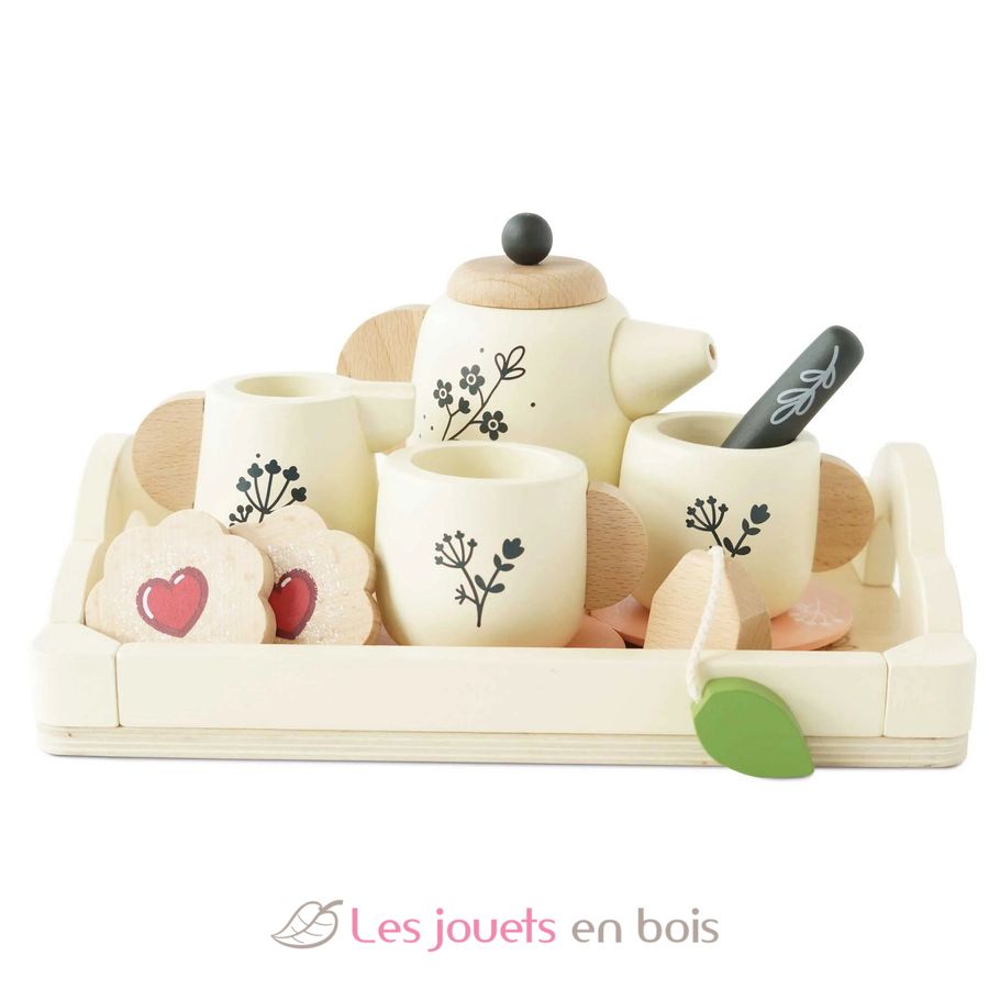 Wooden tea set and tray, a wooden pretend play toy made by Le Toy Van.