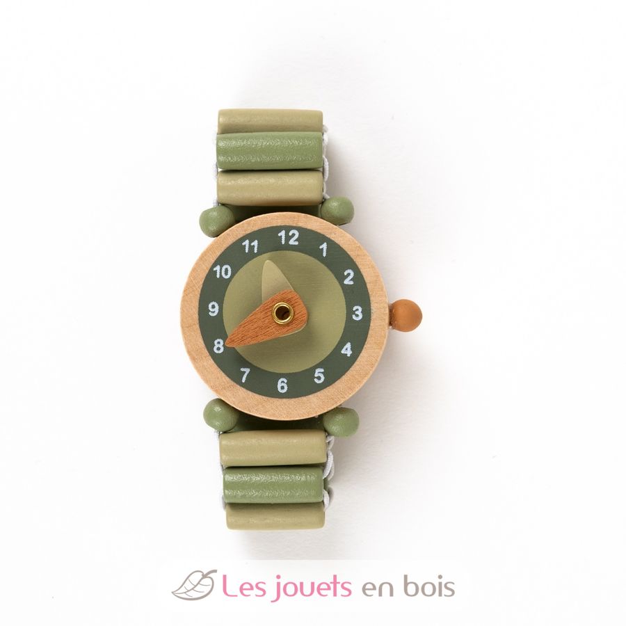 Lovely wooden watch with moving hands to learn to read the time.