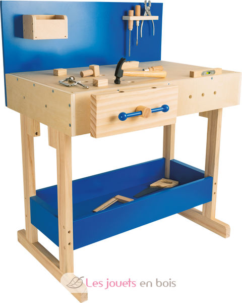 Workbench with professional tools, a wooden toy made by Small Foot Company. Item number 10839.